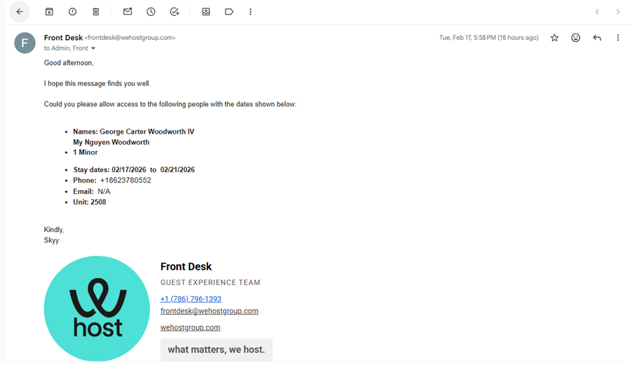 • Register guests via email in advance to facilitate a smooth check-in process, avoiding misunderstandings and delays.
